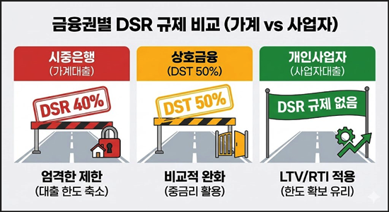 | DSR 규제 | 엄격 적용 (40% 이내) | 예외 적용 (DSR 안 봄) |